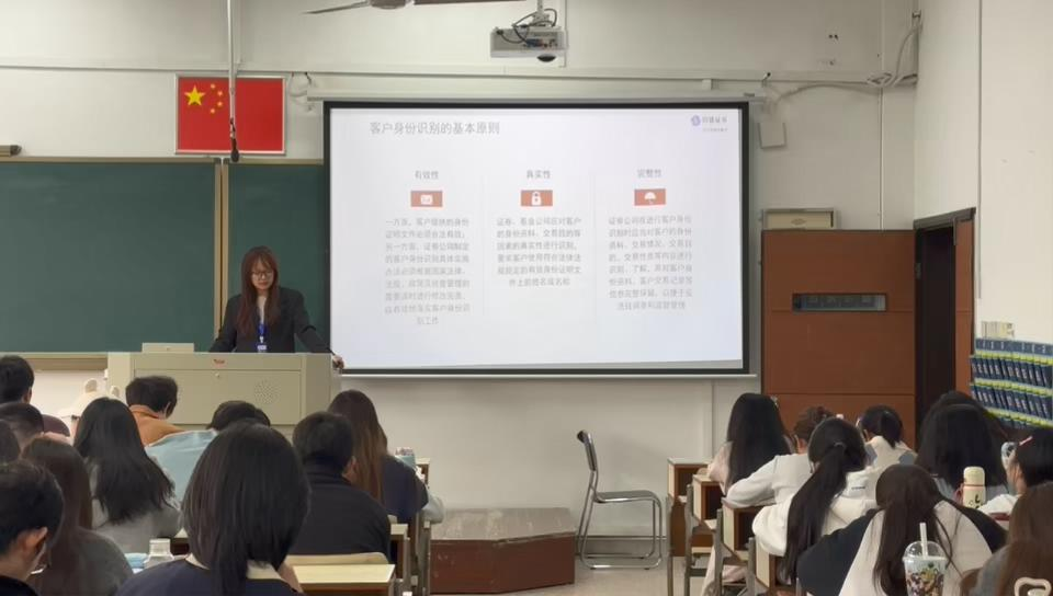 授课过程中,专家们结合自身从业经验,通过案例解析、数据展示和互动问答,生动呈现了证券行业的实践图景与发展动态。学生围绕合规风险、区域产业融资等问题踊跃提问,专家逐一细致解答,课堂气氛热烈。