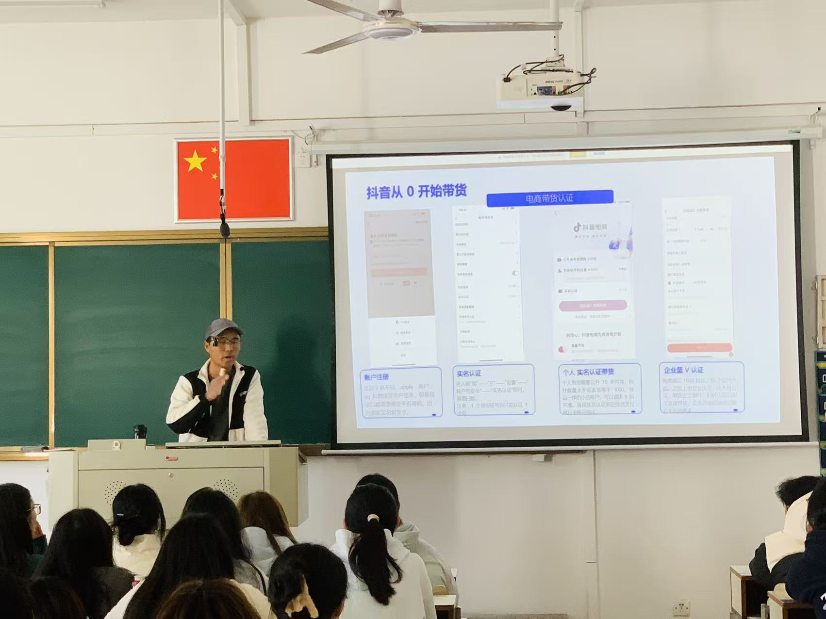 江霄为学生带来了时长为4学时的短视频直播运营专题培训,帮助学生了解短视频直播运营相关知识、掌握比较扎实的短视频直播实战技能;徐康为学生带来了时长为2学时的网络营销内容创作专题培训,助力学生了解流量内容创作过程、品牌内容分享以及AI在内容创作中的应用;吴敦永为学生带来了时长为2学时的电商经营决策专题培训,给学生阐述了电商企业销售突破背后的原因和如何构建企业的竞争力,并分享了销售突破实战经验,使学生了解电商企业成长底层逻辑及经营决策。