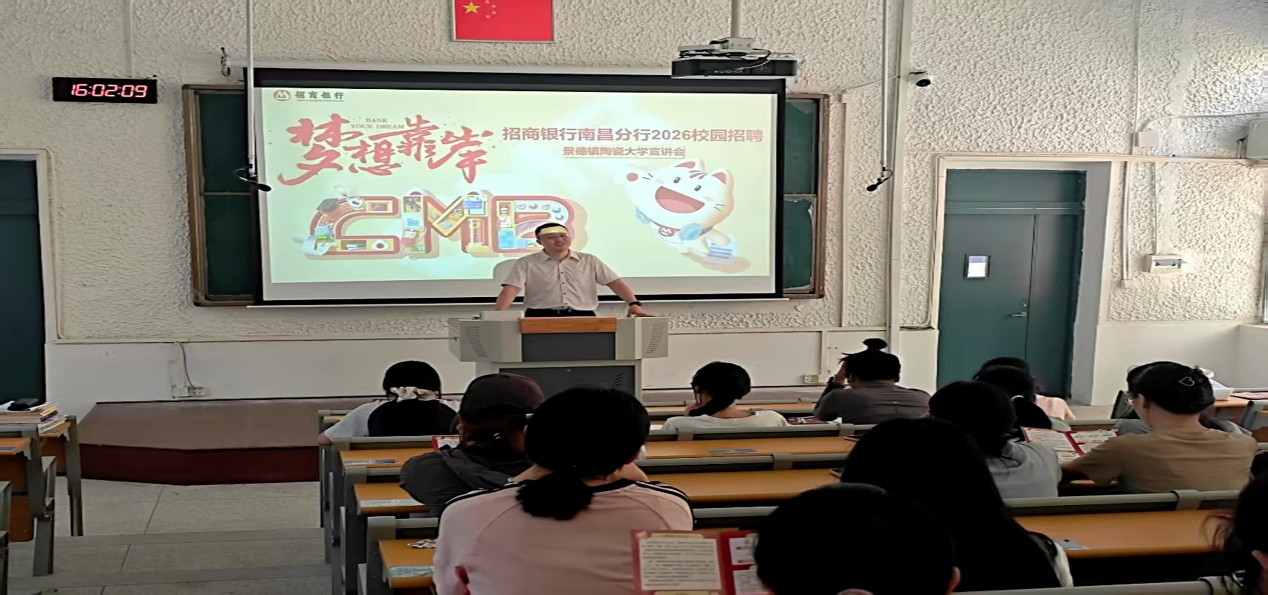 2025年9月28日下午,招商银行南昌分行2026年秋季校园招聘宣讲会在景德镇陶瓷大学管理与经济学院中阶教室顺利举行。本次活动在学院就业专员范田田的组织下,共二十名应届毕业生参与。