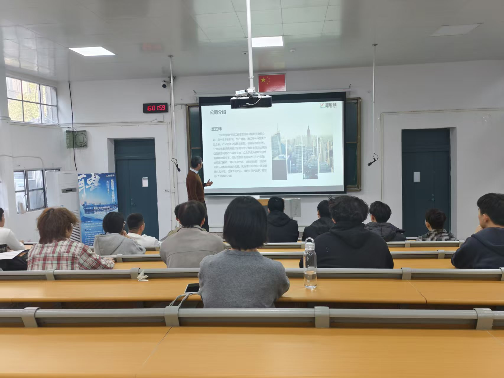 2025年10月24日下午,杭州空匠师环保材料有限公司在景德镇陶瓷大学西阶教室成功举办了一场专场校园招聘宣讲会。本次宣讲会为2026届毕业生提供了优质的就业机会,同时也为企业发展储备了优秀人才。